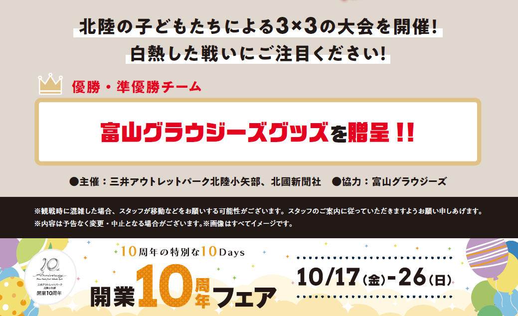 Organized by: MITSUI OUTLET PARK HOKURIKU OYABE, Hokuriku Shimbun Co., Ltd. Cooperation: Toyama Grouses