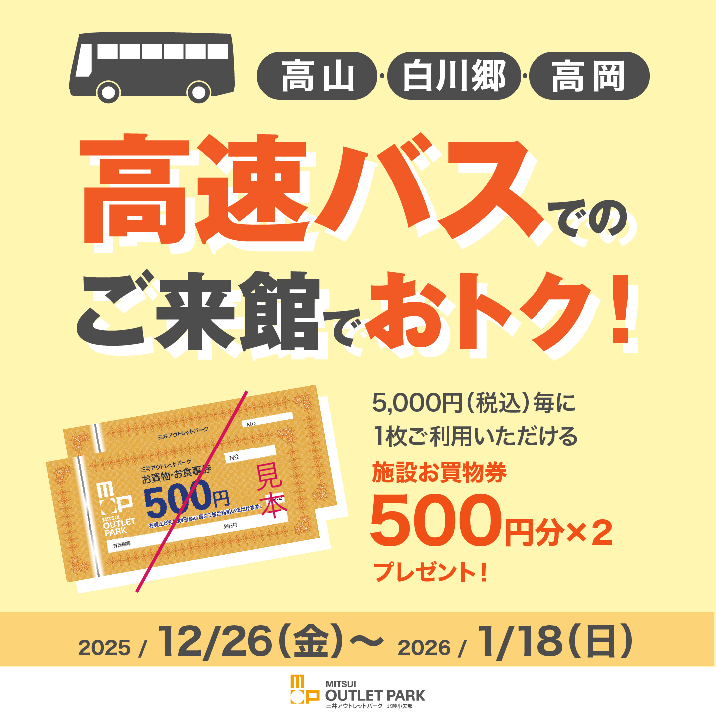 高速バスご利用でお買物券をゲットできるおトクなキャンペーンを開催いたします。
