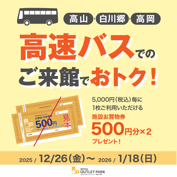 [Exclusive to express bus users] Receive a shopping voucher when you use designated bus routes!