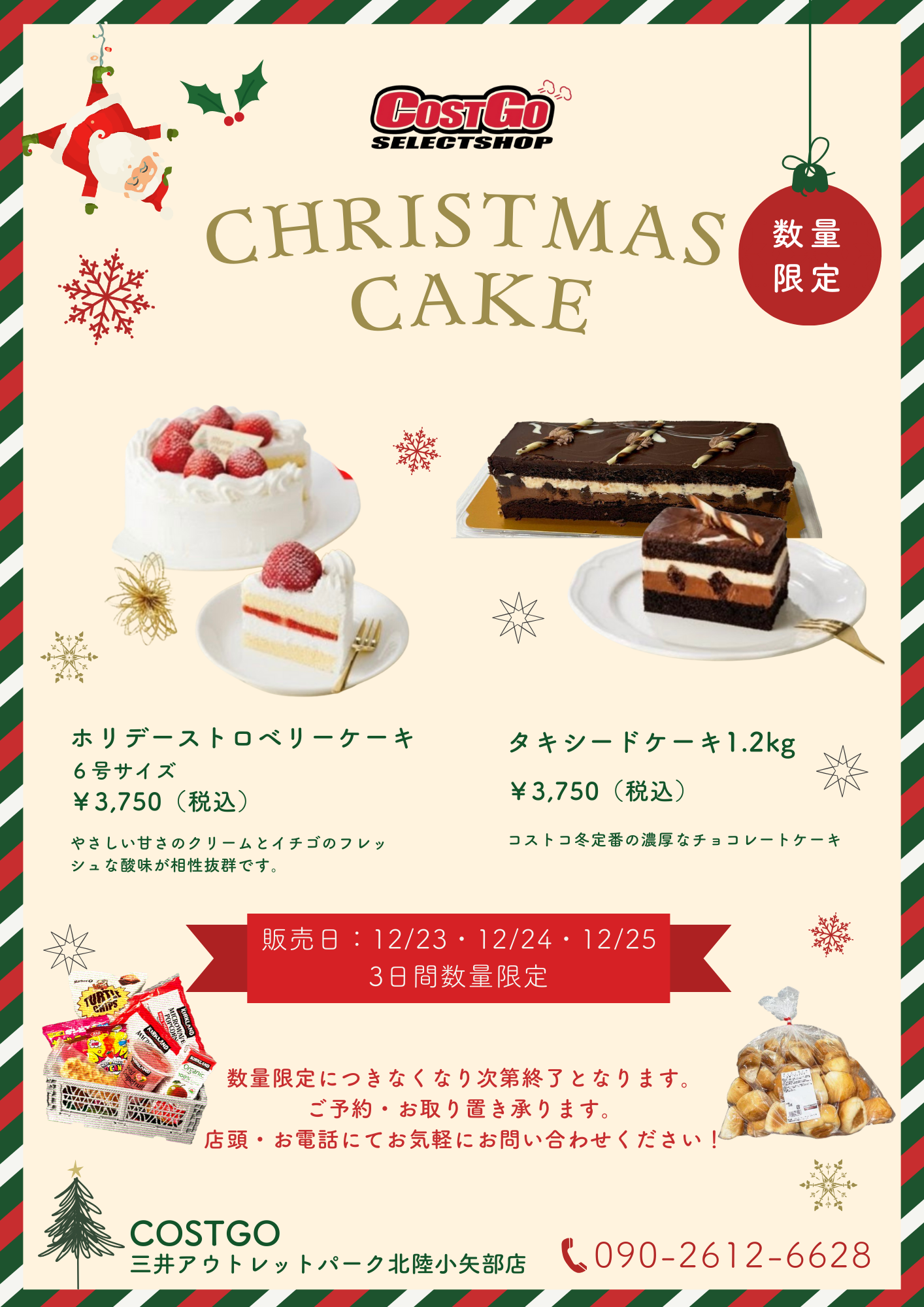 [December 23rd (Tue), 24th (Wed), 25th (Thu)] CostGo Christmas cake sale!!