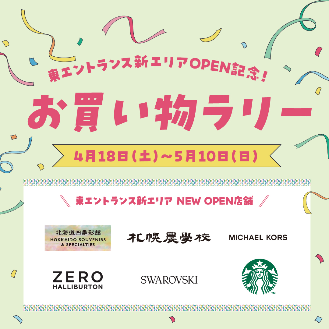 To celebrate the opening of the new East Entrance area on April 18th, we will be holding a limited-time "Shopping Rally"!