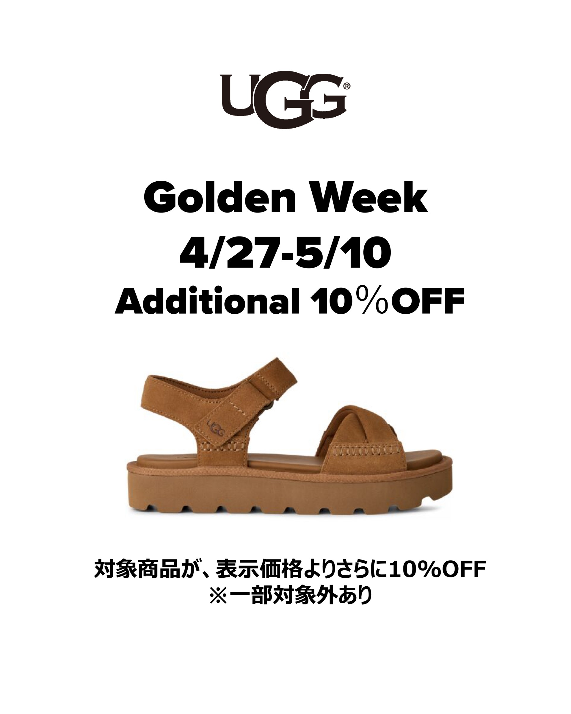 - April 27th (Mon) - May 10th (Sun) UGG Outlet Store Exclusive! 10% OFF on selected items