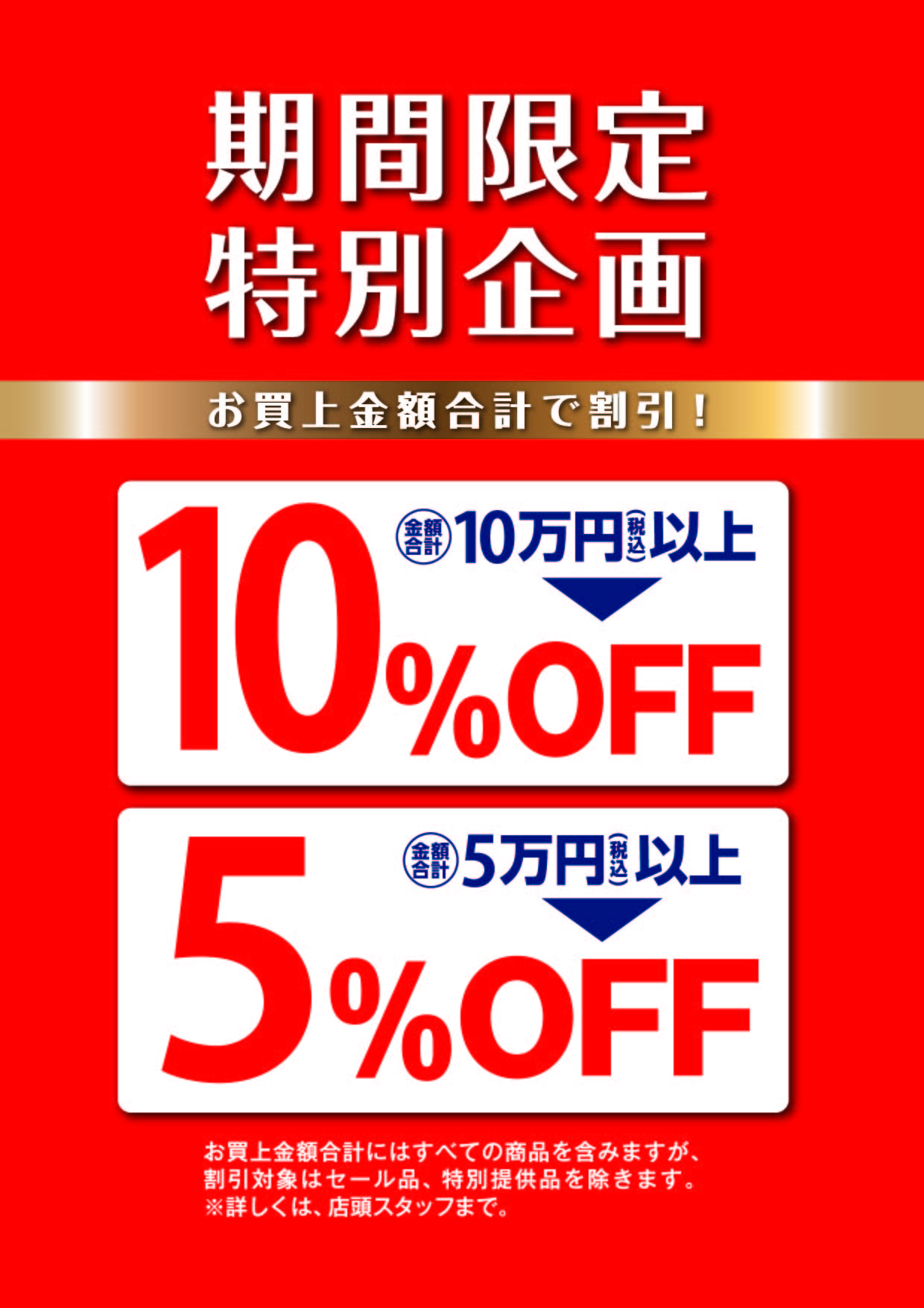 Over 100,000 yen (tax included) in 10% OFF *
