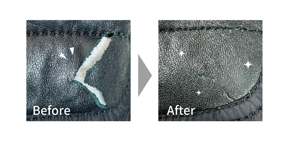 Leather clothing that has been snagged or torn by a fall can be repaired (by gluing leather to the back of the garment) although repair marks will remain.