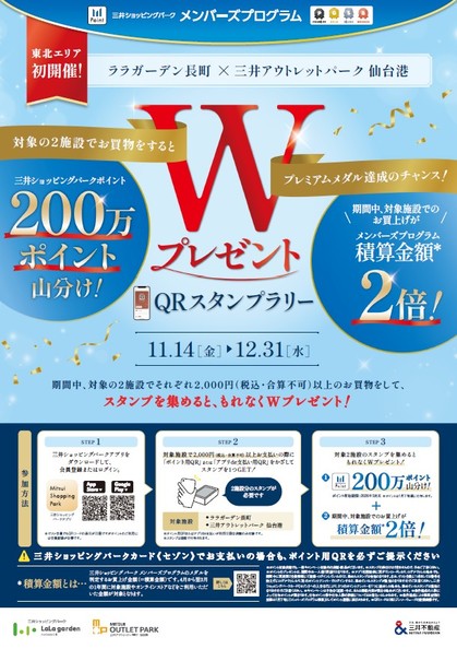 - Lala Garden Nagamachi x MITSUI OUTLET PARK SENDAI PORT Double Gift QR Stamp Rally 11/14 (Fri) - 12/31 (Wed)