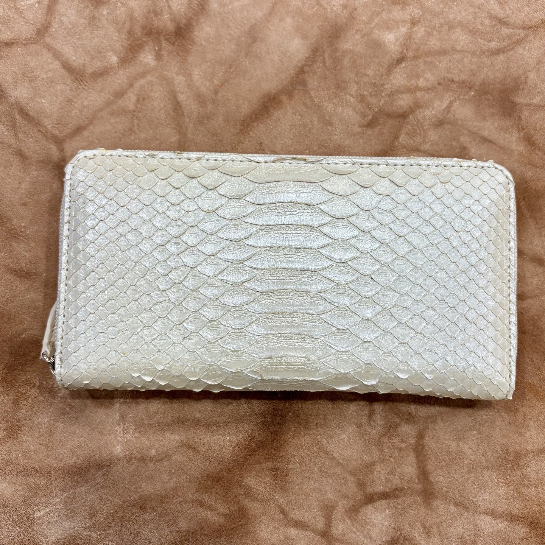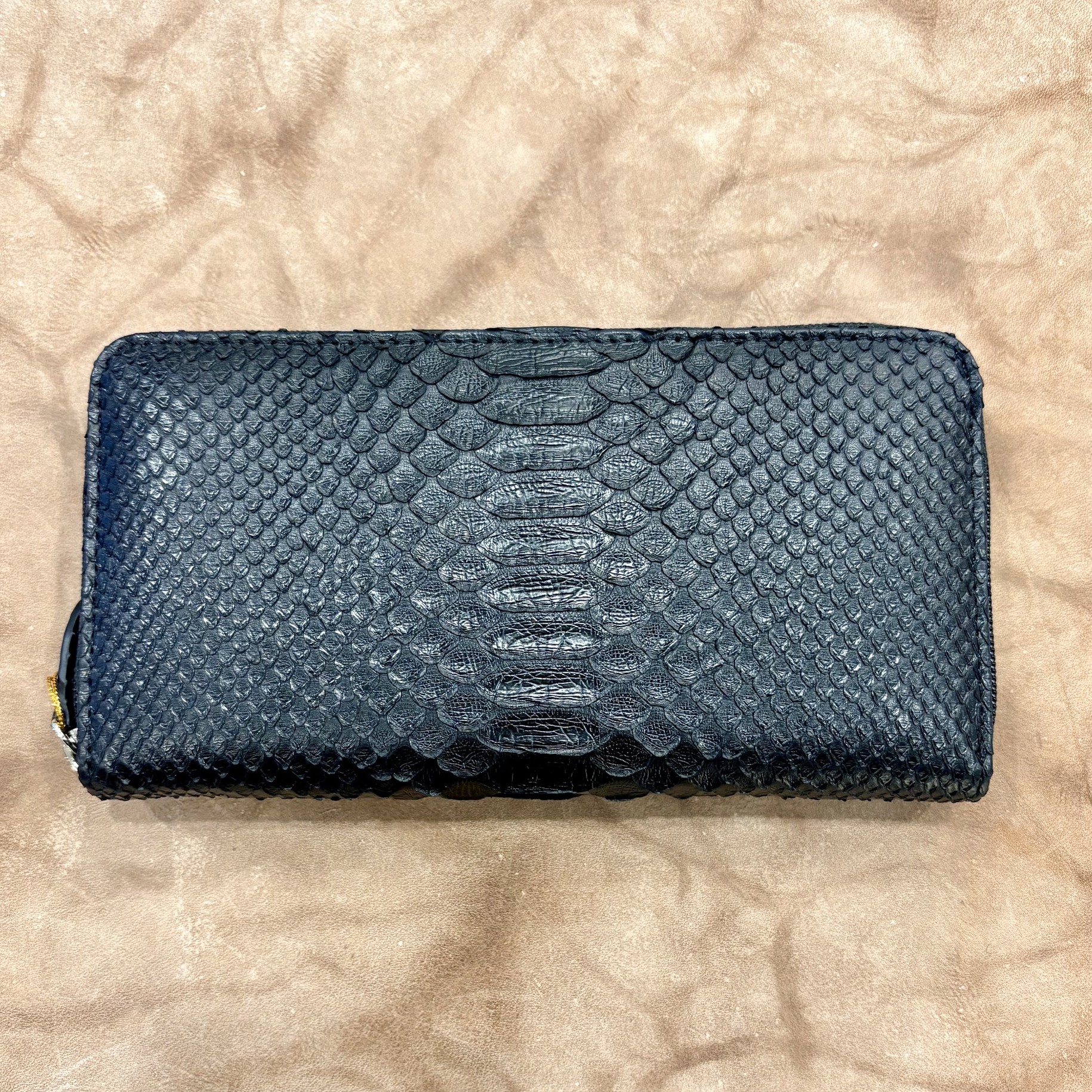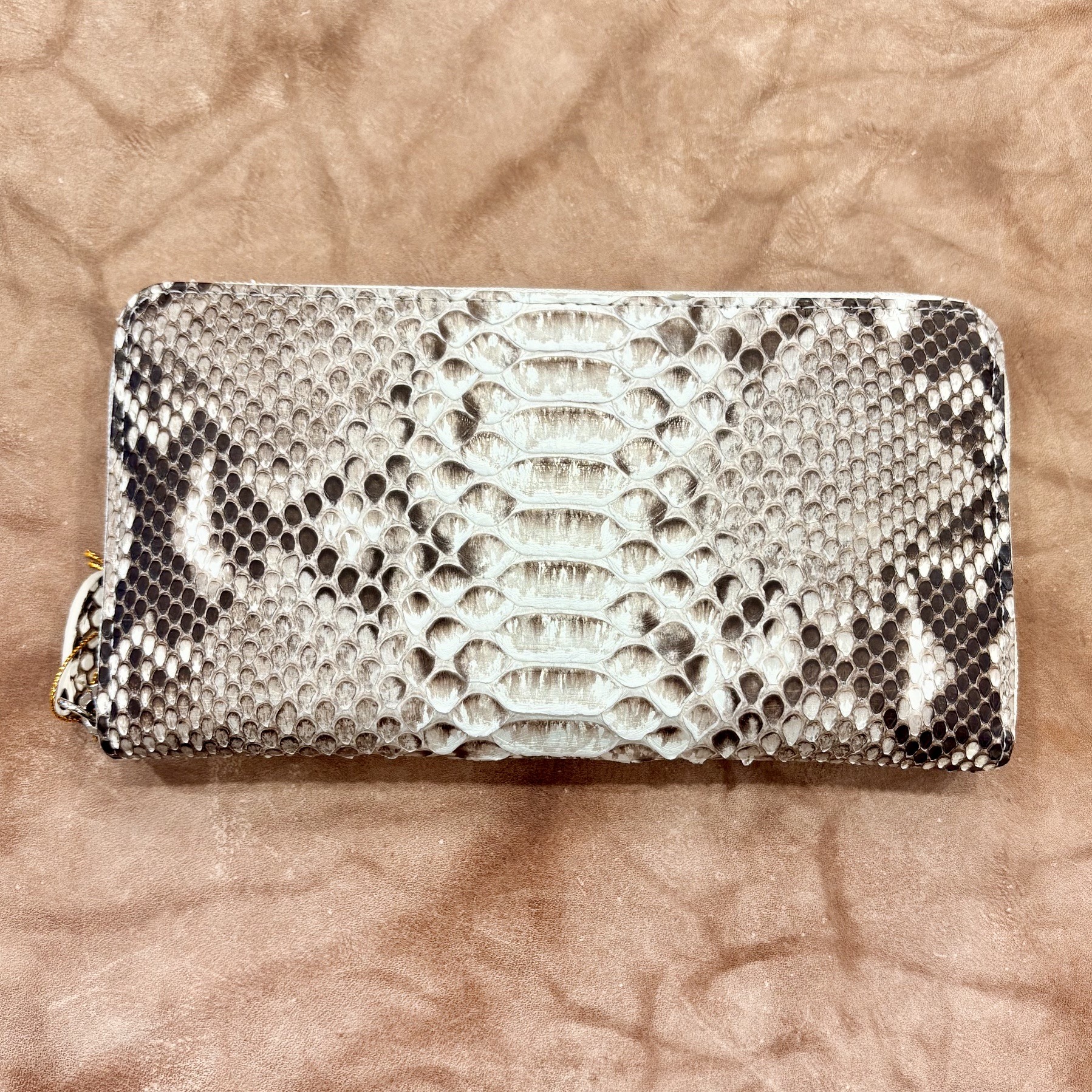 A round-zipper long wallet made of python leather (snakeskin)