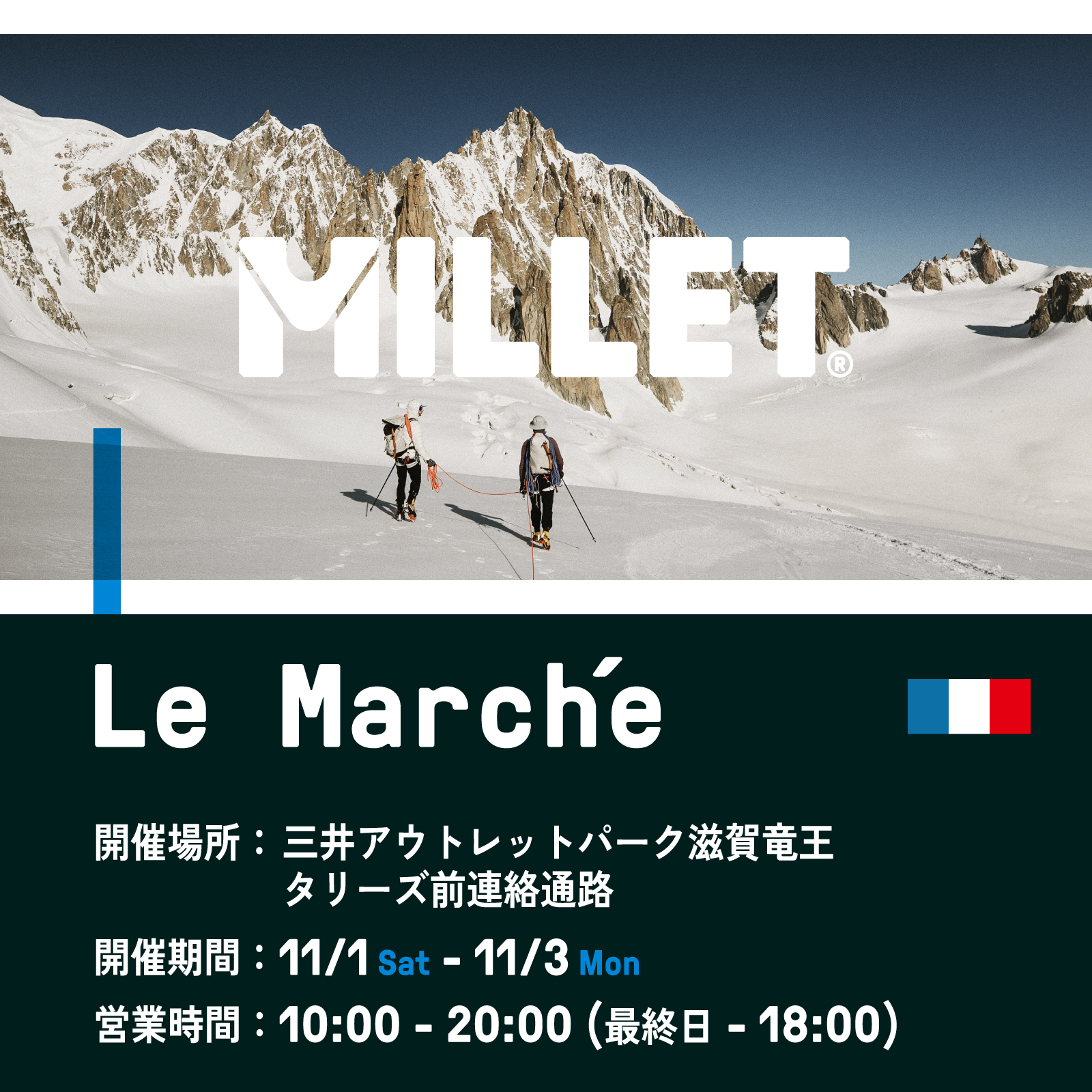 Millet, which has been developing products to support users' new challenges for over a century, will be holding an outdoor market for a limited time.
