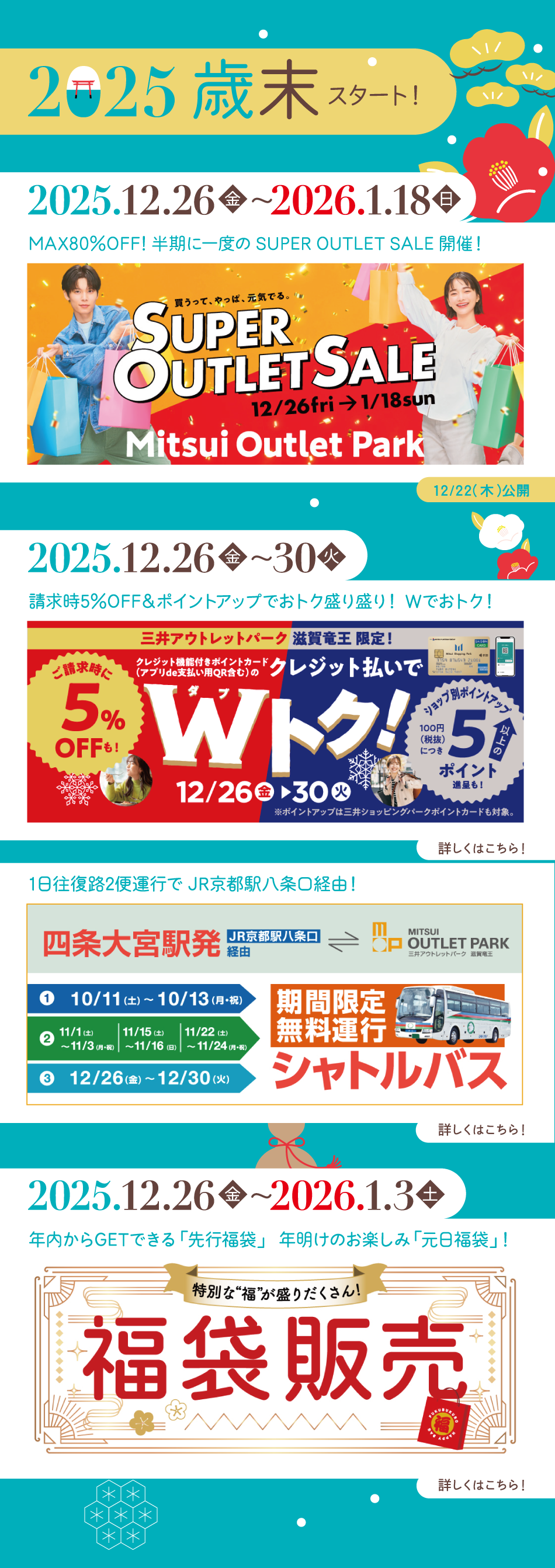 Year-end and New Year Event Calendar 2025-2026 Year-end and New Year Event Calendar 2025-2026 歳末 新春 Wトク 京都シャトルバス 福袋 ふくみくじ 激辛グルメフェス グルメ&スイーツ ポイントアップデー ETC