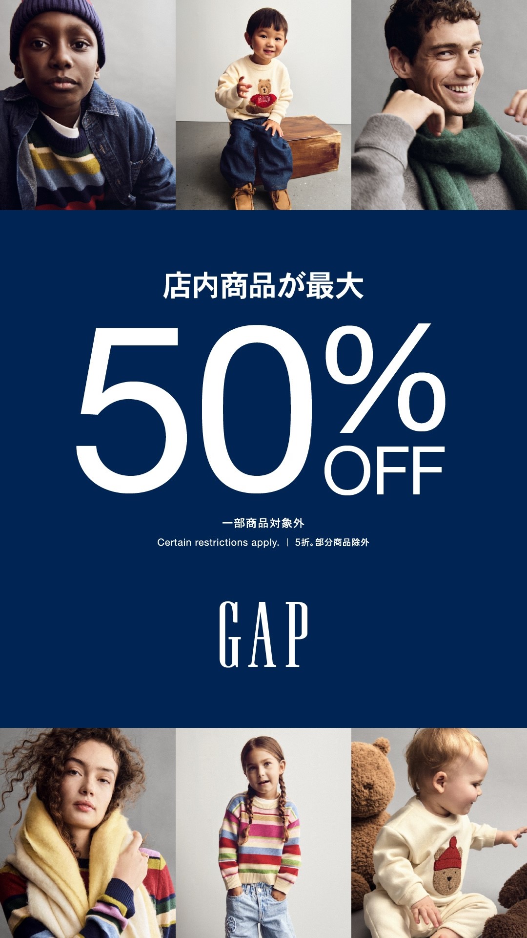 At GapOutlet BBY Minami-Osawa store, limited-time price items are currently up to 50% off!