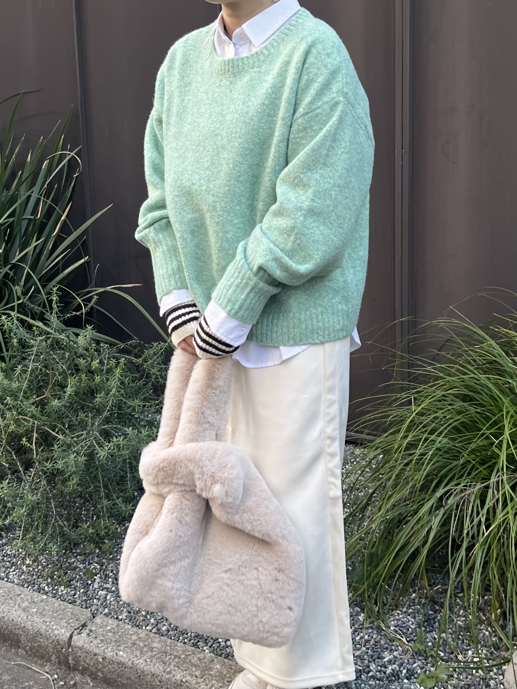 Mint and pink are a mixed color combination⭐︎The beautiful accent colors add a touch of glamour to your fall and winter style♪