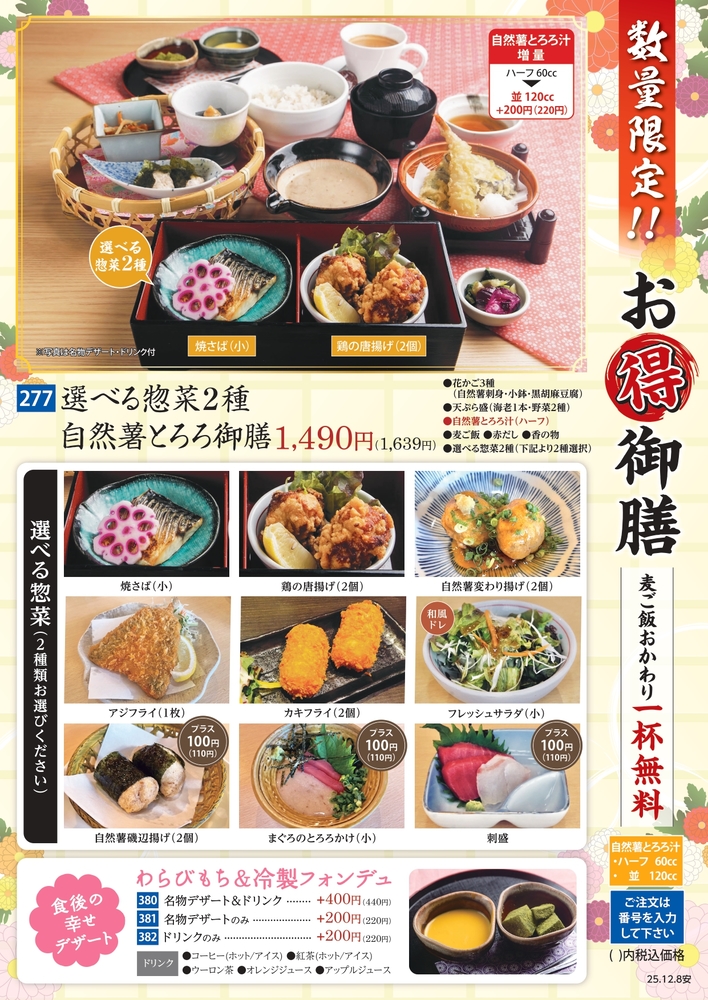 ◎華花では希少食材『自然薯』や『旬の食材』を活かした心も体も温まる和食が自慢です!