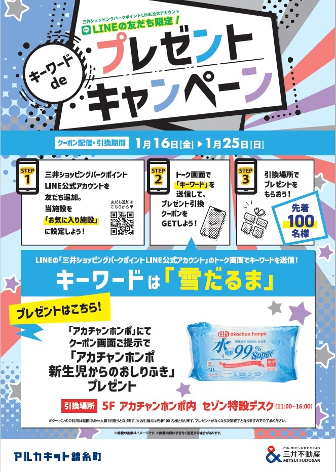 미쓰이 쇼핑 파크 포인트 LINE 공식 계정의 친구 한정으로 개최!