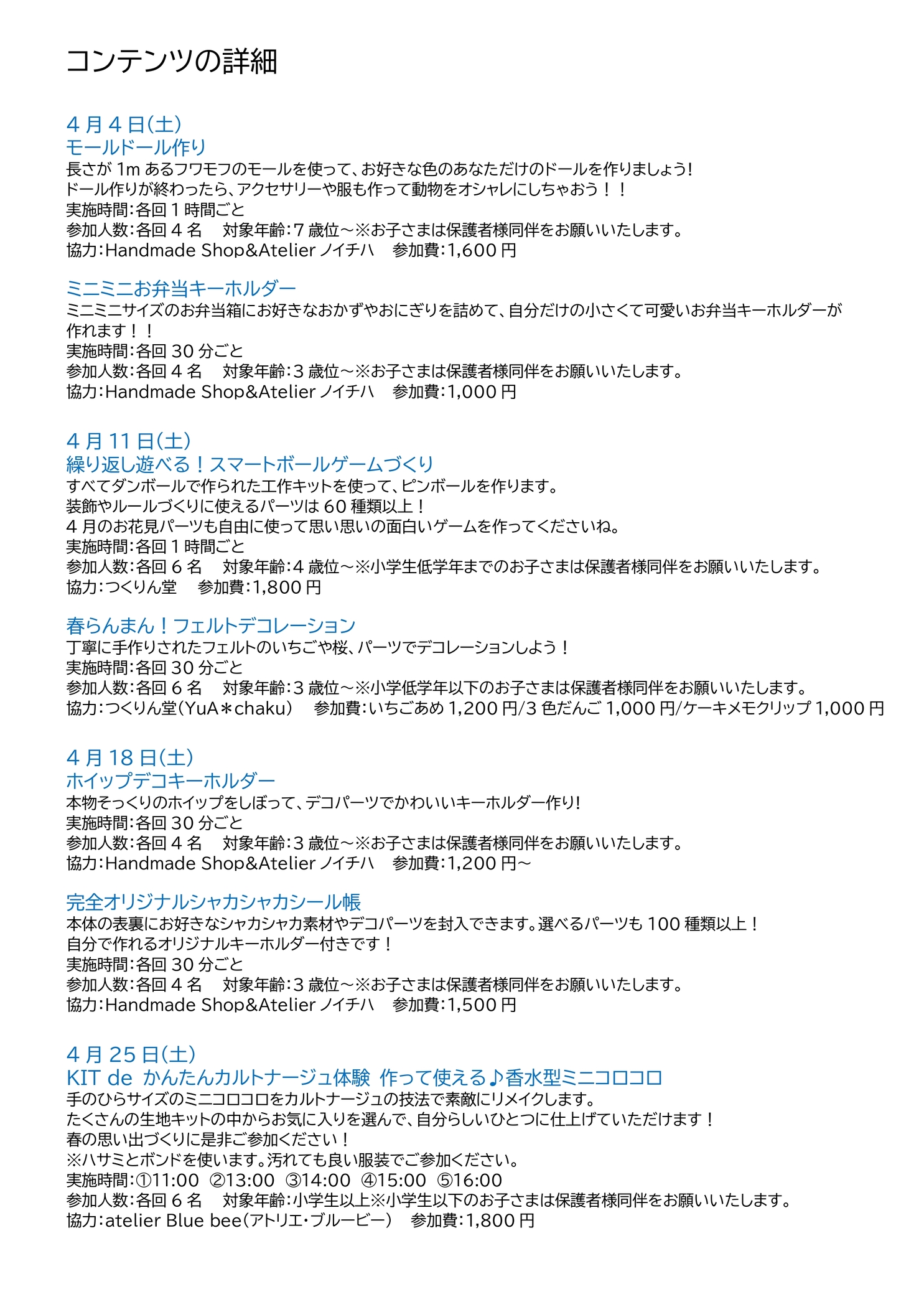 Arcakit Kinshicho 에서는, 4월도 매주 토요일 개최 “만지자!만들자!KIT de 체험”을 개최합니다!