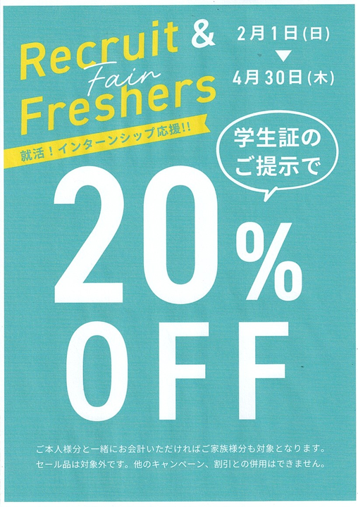 【就活!インターンシップ応援!!】20%OFF!!