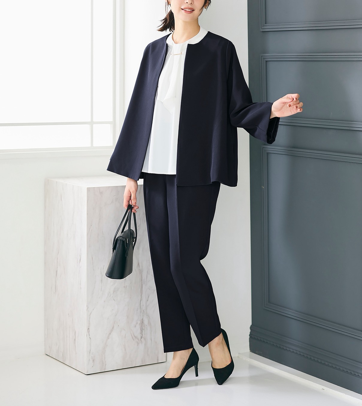 재킷은 A 라인 silhouette과 플레어 슬리브 디자인으로 한 장 날개하는 것만으로 깨끗한 라인에.