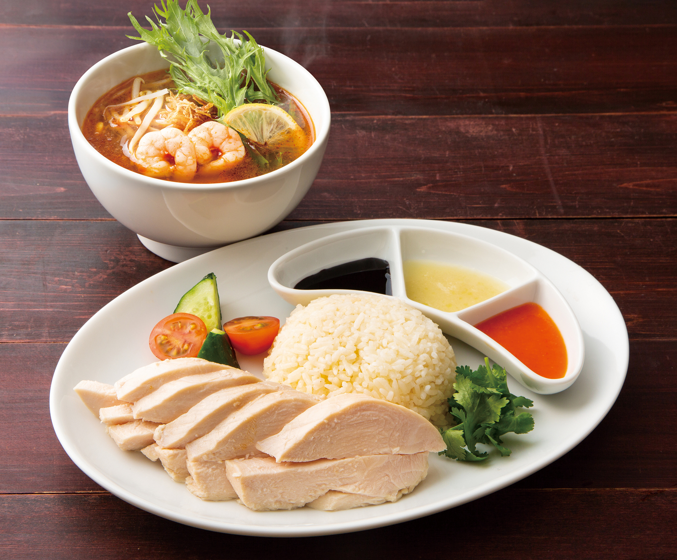 저희 가게 강추의 싱가포르 치킨 라이스와 대인기의 톰 야무쿤포가 동시에 즐길 수 있는 메뉴가 되고 있습니다!