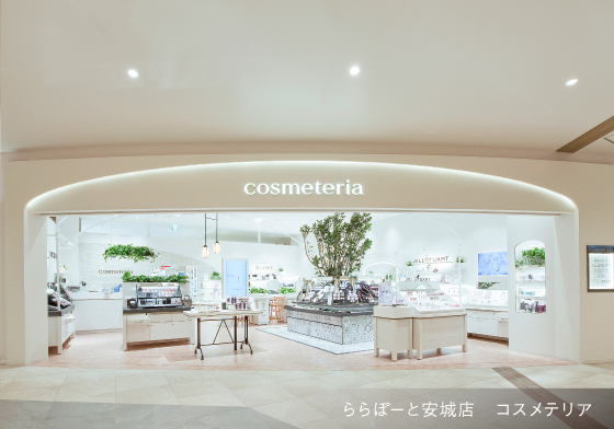 코세이의 인기 브랜드를 모은 코스메테리아는 신선한 꽃과 그린으로 둘러싸인 안뜰과 같은 쾌적함.