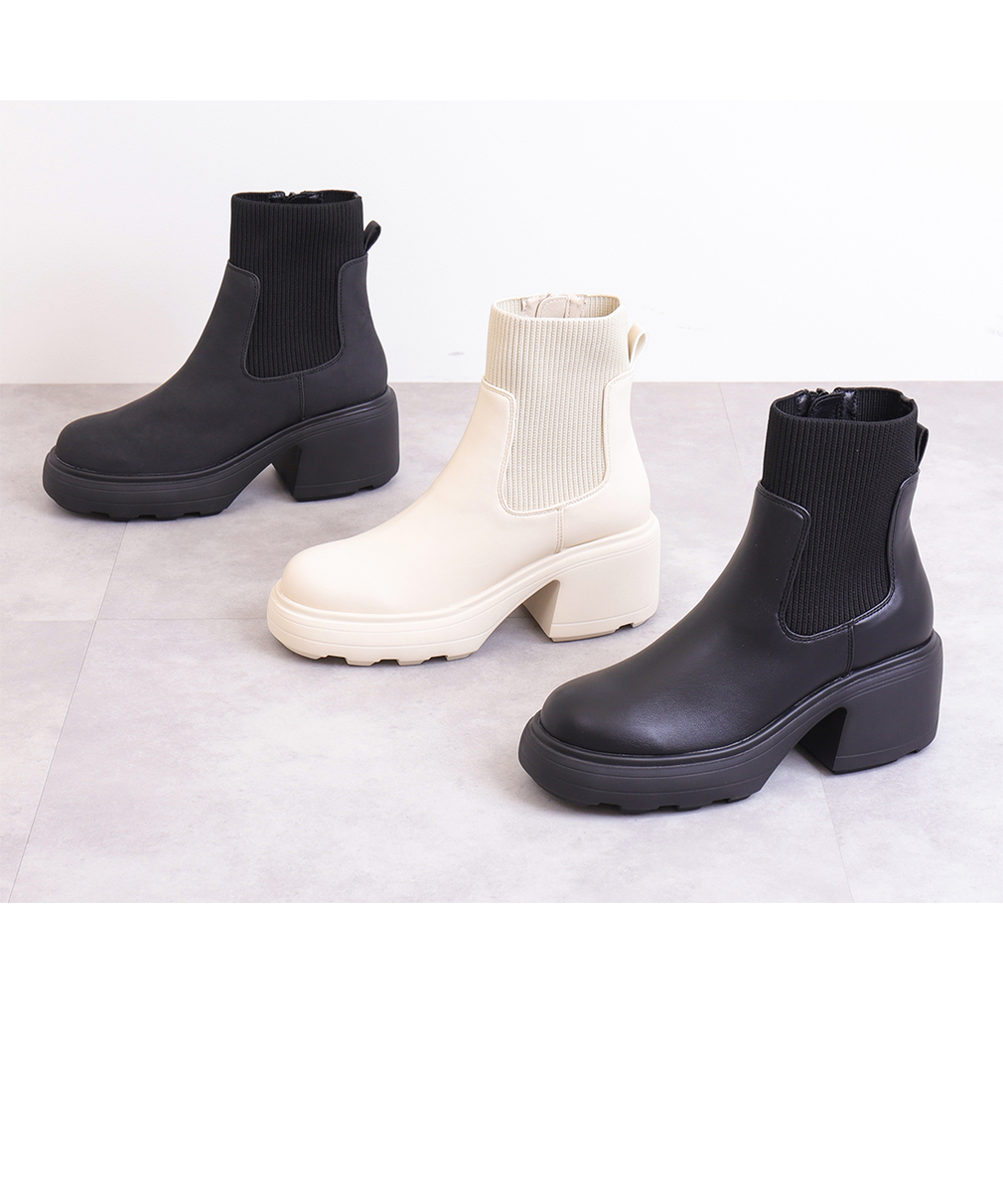오늘은, 신축성이 있는 니트 소재와 합피의 콤비로, 부드러운 신었을 때의 감촉이 매력의 쇼트 부츠의 소개입니다☺︎