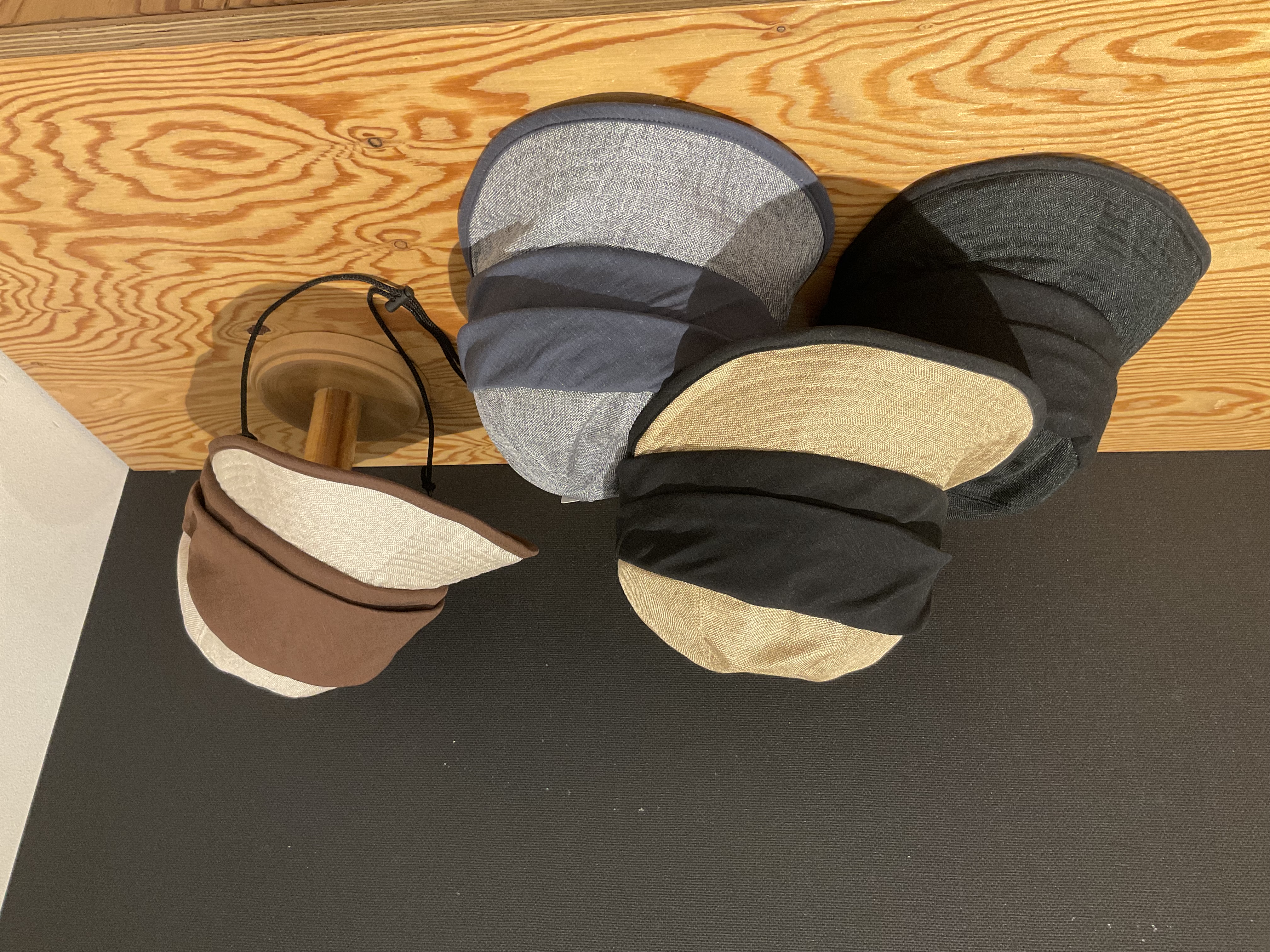 자키 캡의 특징 아래를 향한 긴 고리로 얼굴에 확실히 그늘을 만들어 줍니다!