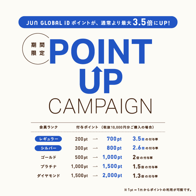 기간중, 통상 상품의 매입 금액과 회원 랭크에 따라, JUN GLOBAL ID 포인트를 플러스 5% 선물