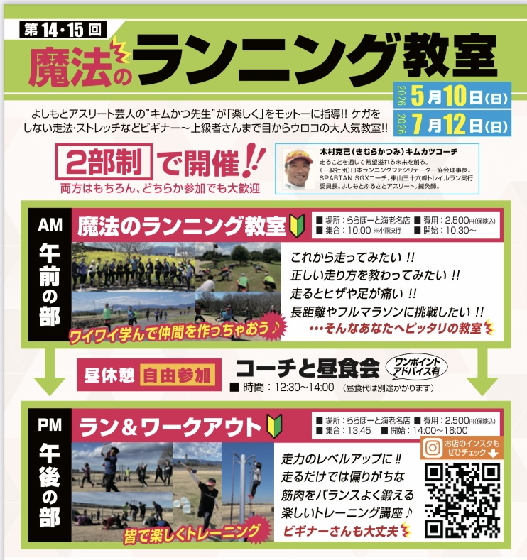 아시카라쿠+에서는 러너 여러분의 서포트도 하고 있어, 새우 명점에서는 김 한편 COACH 기무라 카츠미씨를 특별 강사에 초대해,