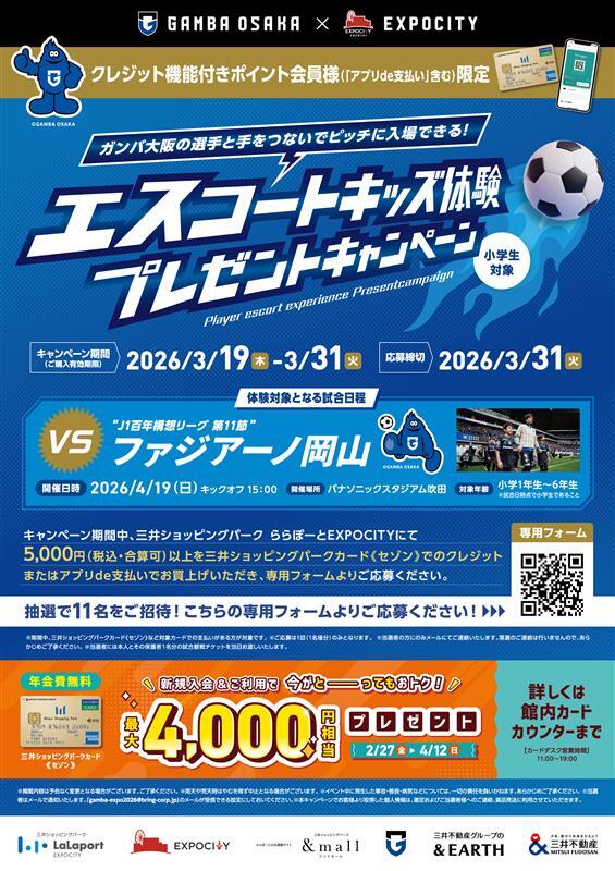 - 【3/19(목)~3/31(화)】GAMBA OSAKA 오사카 에스코트 Kids 체험 선물 캠페인