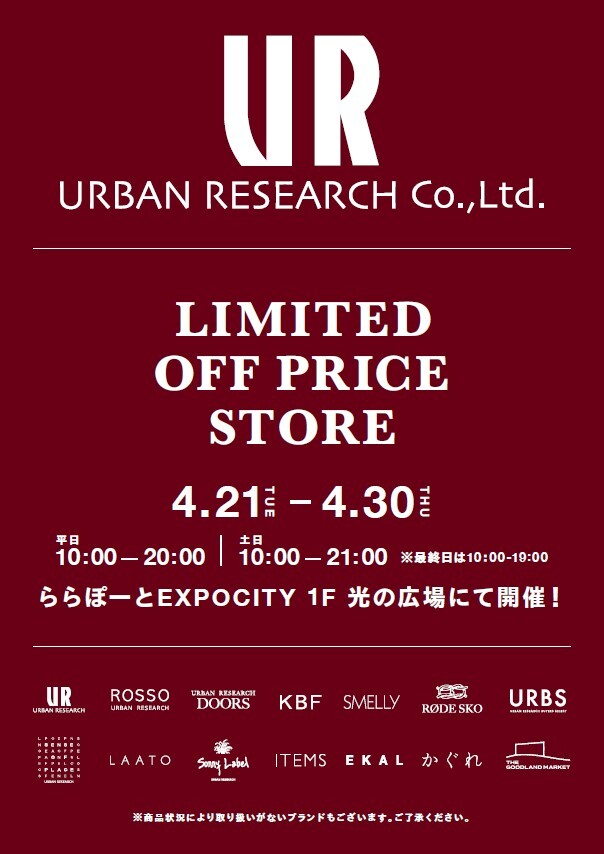 【4/21(화)~4/30(목)】「URBAN RESEARCH 리미티드 오프 프라이스 스토어」개최!
