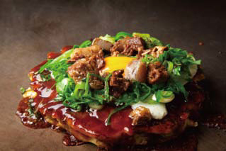 오사카 가루 몬의 스테디셀러, 오코노미 야키! 재료도 듬뿍 넣은 엄선한 직물을 숙련된 장인이 구워 드립니다.