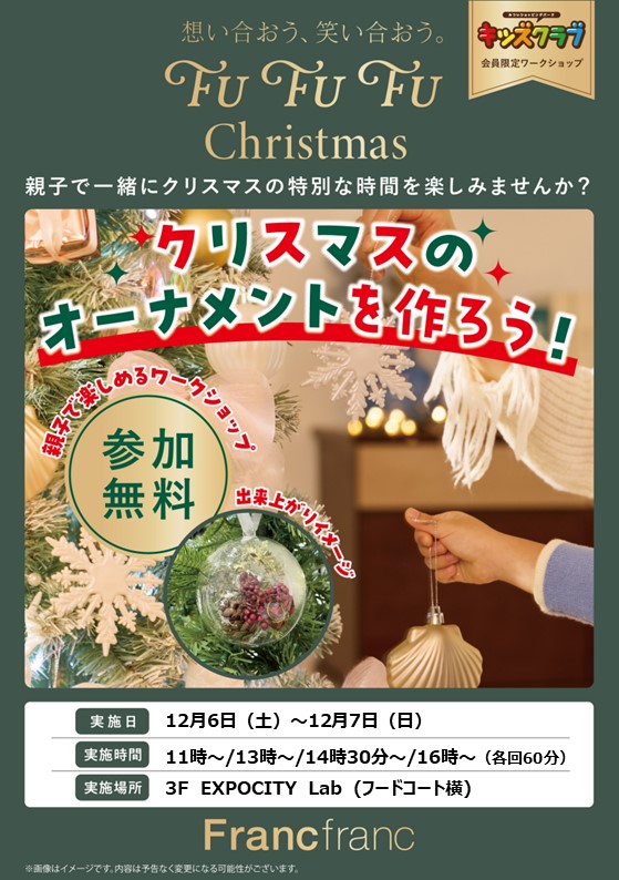 Francfrancでは、オリジナルのクリスマスオーナメントを手作りできるワークショップを開催します!