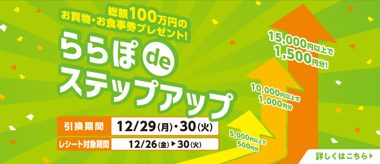 - 총액 100만엔의 쇼핑・식사권 선물! 라라포 de 스텝 업
