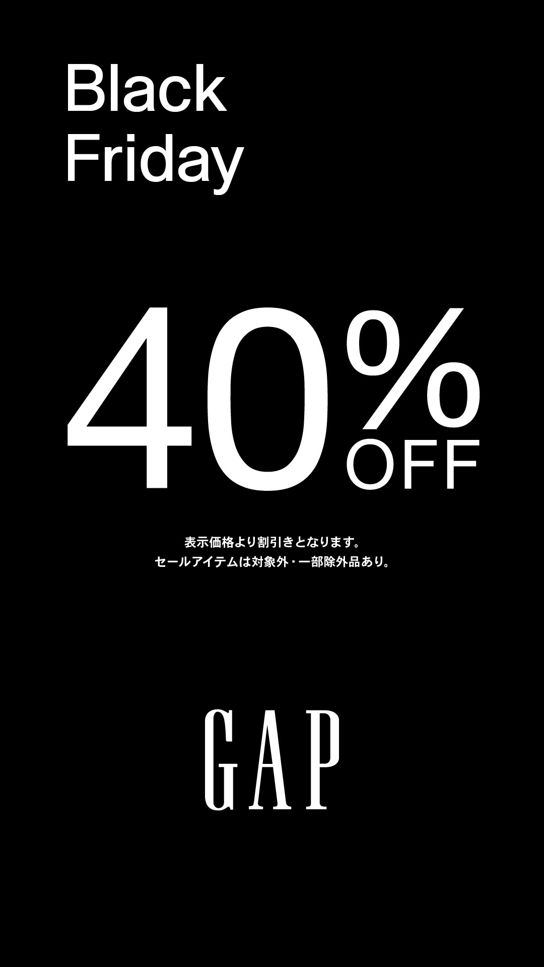 12/1(月)までの期間限定でGAP店内40%OFFを開催しております。