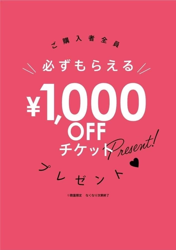 지금, 구입자님 한정으로 점포, 공식 온라인 쇼핑몰 사이트에서 사용할 수 있는 1000엔OFF 티켓을 배포하고 있습니다! ! 부가세 포함 6,000엔 이상으로 이용 가능합니다♡