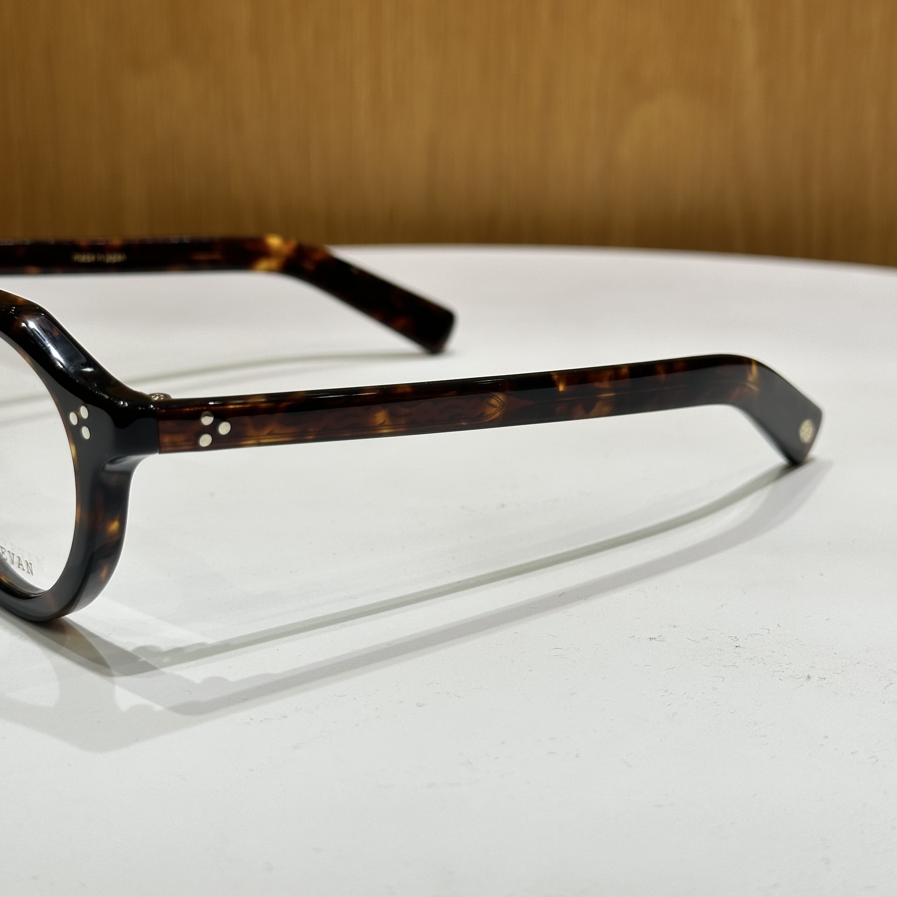 이 모델은 엣지가 있는 두터운 전면과 매우 두꺼운 넓은 템플로 EYEVAN의 프렌치 빈티지를 표현합니다. 앞쪽과 관자놀이 경첩은 60년대 디자인을 원본으로 재현한 것이고, 제조 방식도 경첩을 배치한 코킹 기법을 채택했습니다. 우리는 빈티지 디테일에 충실히 신경 썼으며, 예를 들어 디자인을 최대한 눈에 띄지 않게 만들어 코킹 핀이 보이지 않도록 했습니다.
