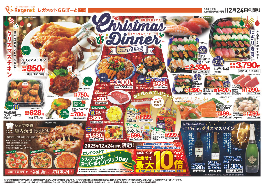 【12/24(水)】のチラシ『レガネットららぽーと福岡のクリスマスディナー』