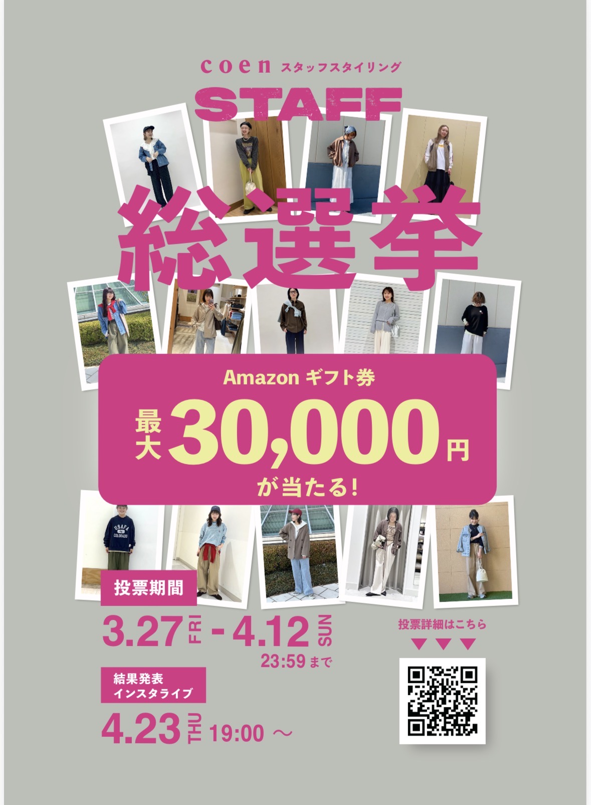 ただいまスタッフスタイリング総選挙を開催中!お気に入りのコーデに投票していただいた方の中から…