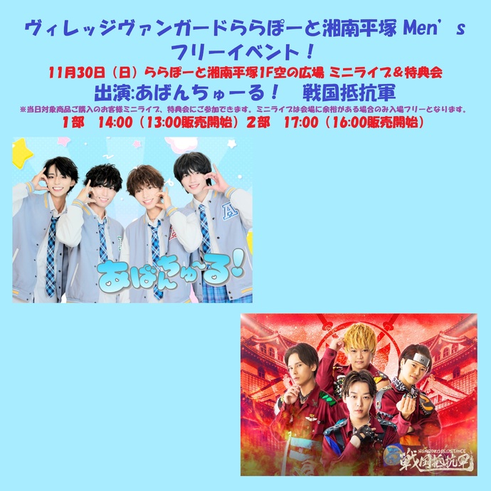11/29 (토) LaLaport SHONAN HIRATSUKA 하늘의 광장에서 라이브 이벤트 개최