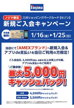 【nojima 한정】미쓰이 쇼핑 파크 카드 <세종> 신규 입회 캠페인