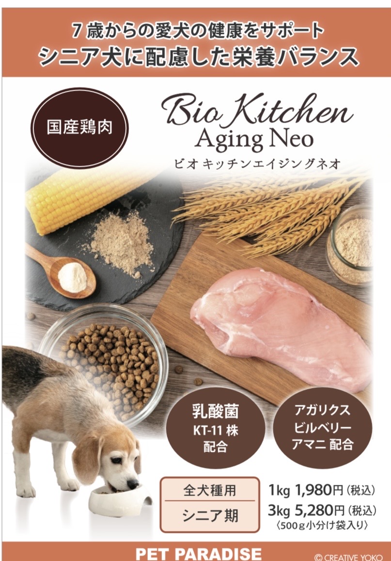 PET PARADISE "비오 키친"시리즈에 시니어 개를 향해 개발된 "에이징 네오"가 등장했습니다.