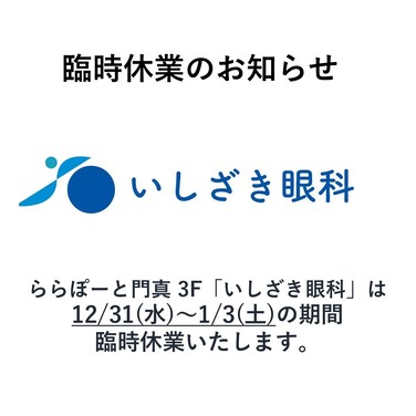 【ISHIZAKIGANKA】임시 휴업의 알림