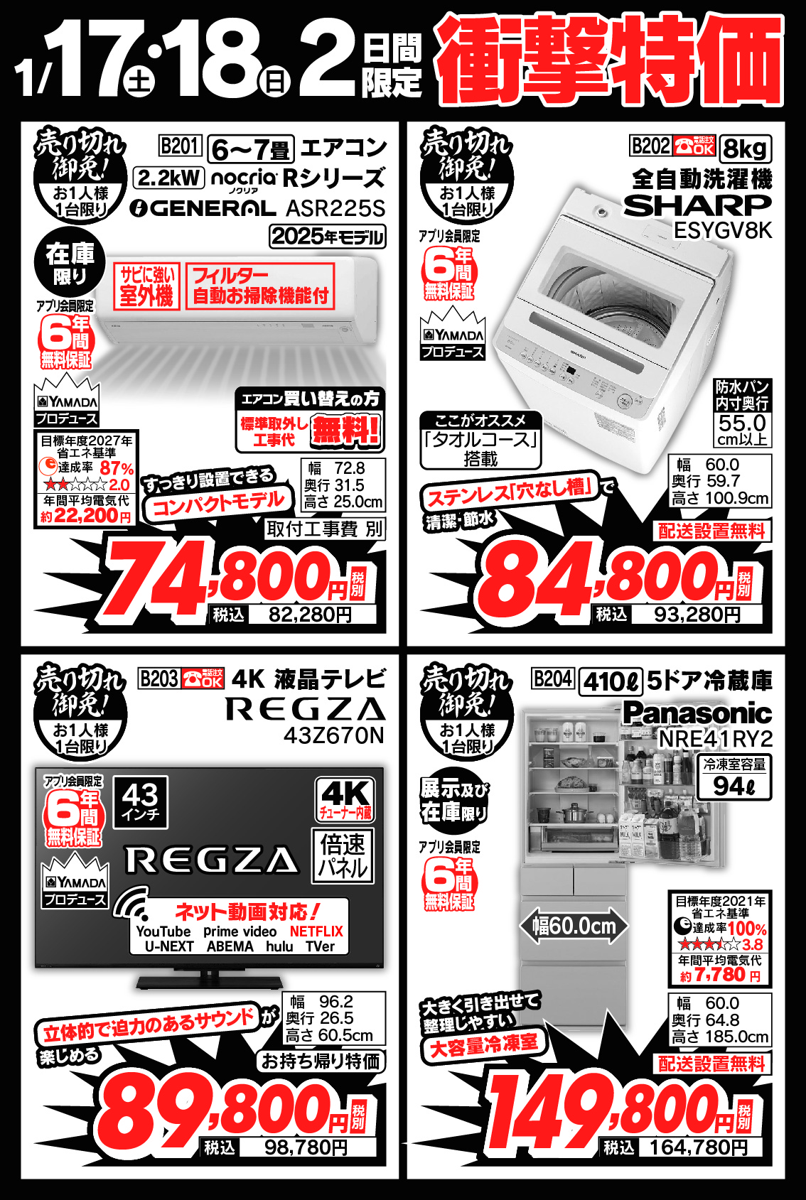 1/17(토)・18(일) 2일간 한정 충격 특가