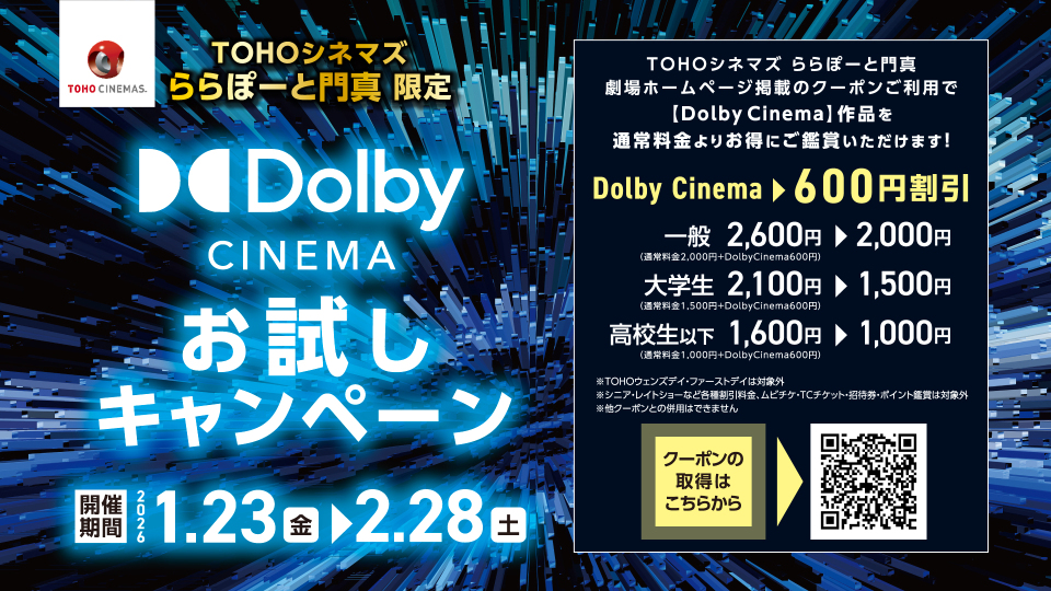 - 【1/23(금)~】600엔도 유익하게! DolbyCinema 시험 캠페인 실시중!