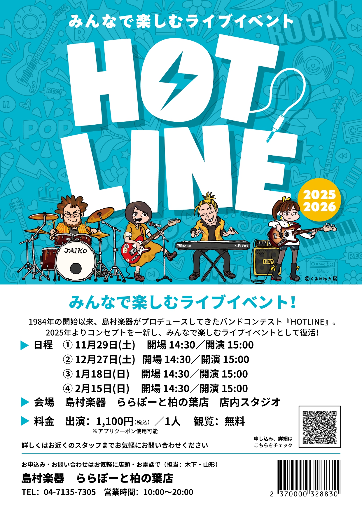 - HOTLINE2025-2026 ららぽーと柏の葉店ライブ、出演者募集中!