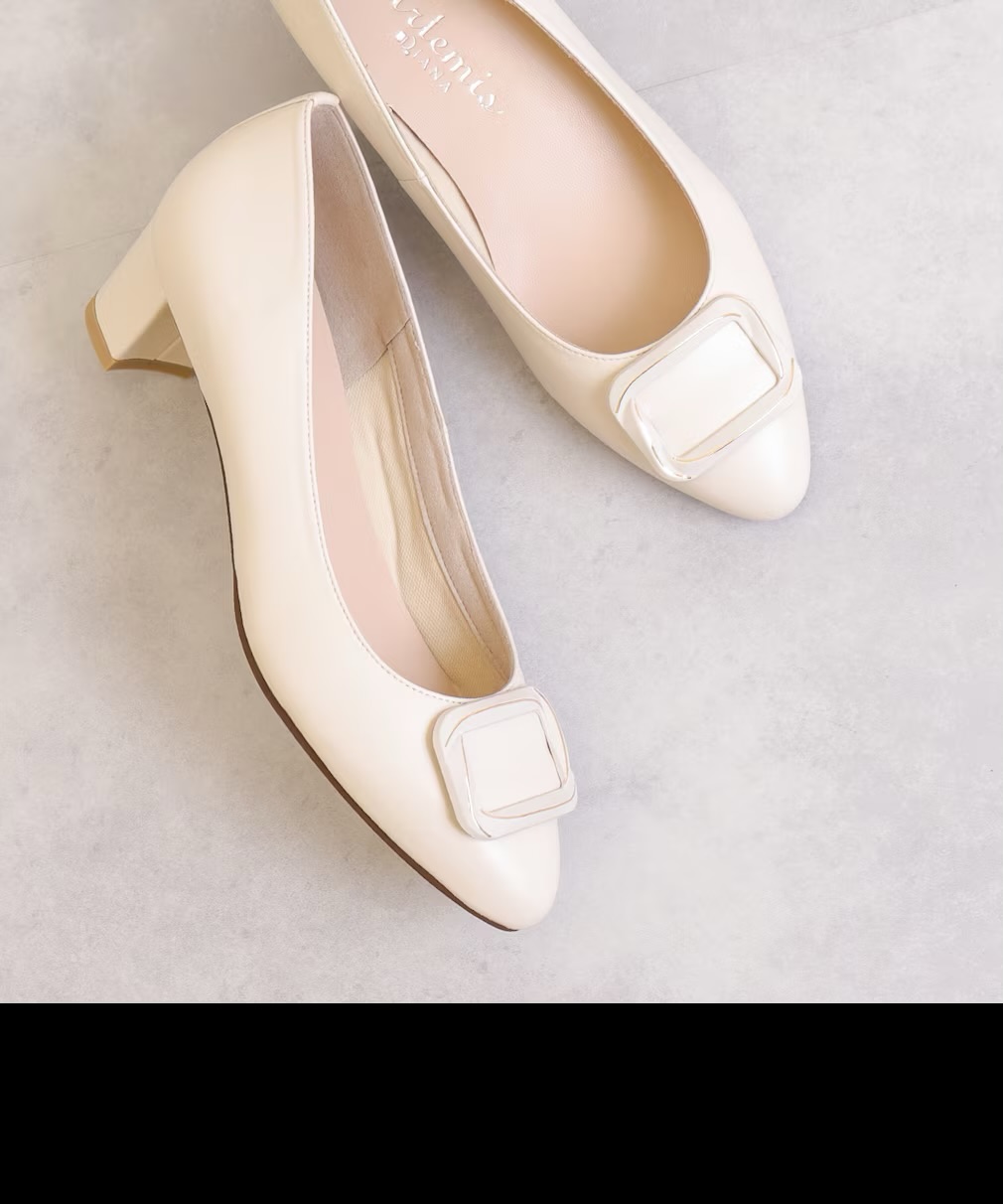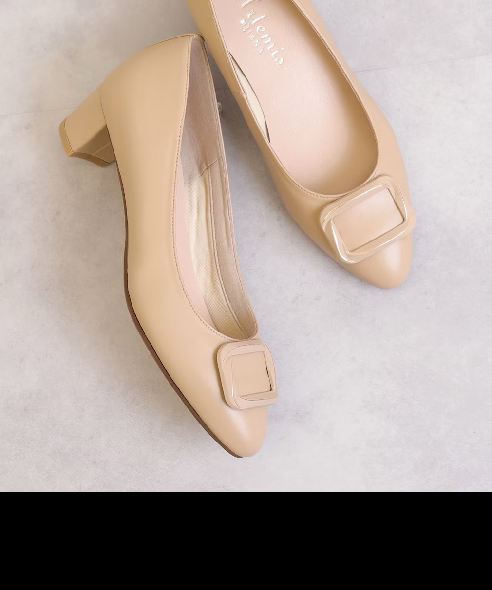 같은 계색으로 완성한 버클 모티프가, 품위 있고 상냥한 인상의 발밑으로 완성되는 펌프스♪