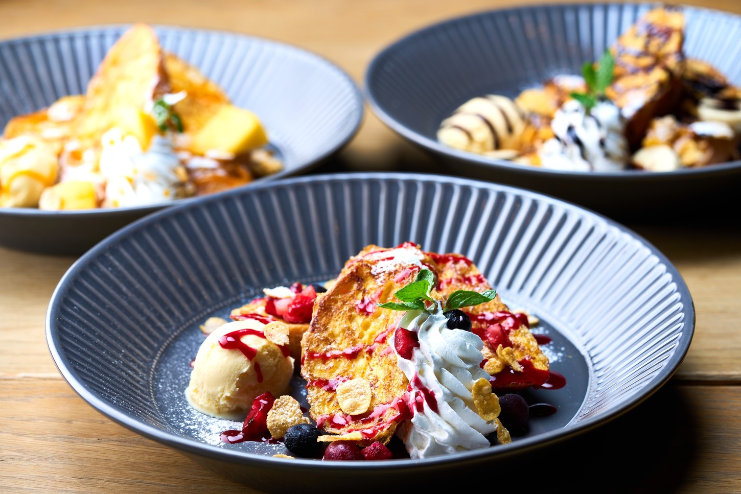 과자는 풍부한 종류의 솜털 "프렌치 토스트"가 일품입니다.