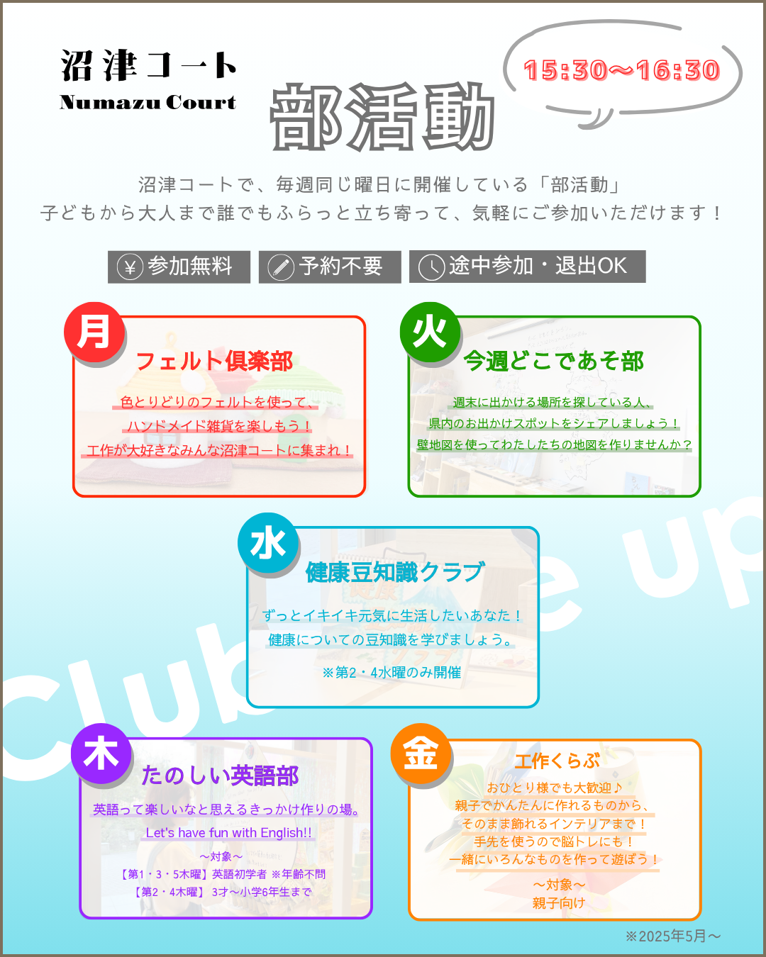 누마즈 코트에서 매주 같은 요일에 개최하고 있는 「부활동」.
