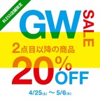 - 店舗限定 GW SALE開催! 2点目以降20%OFF