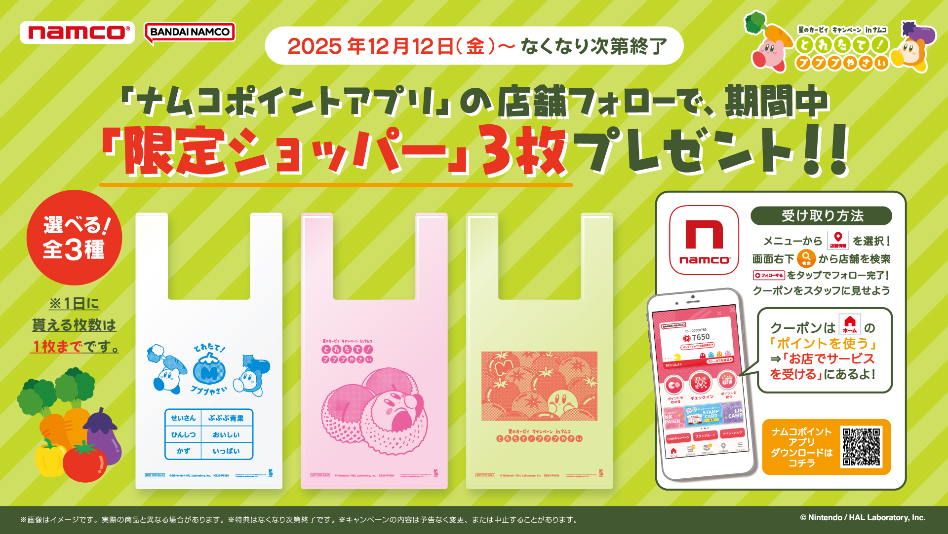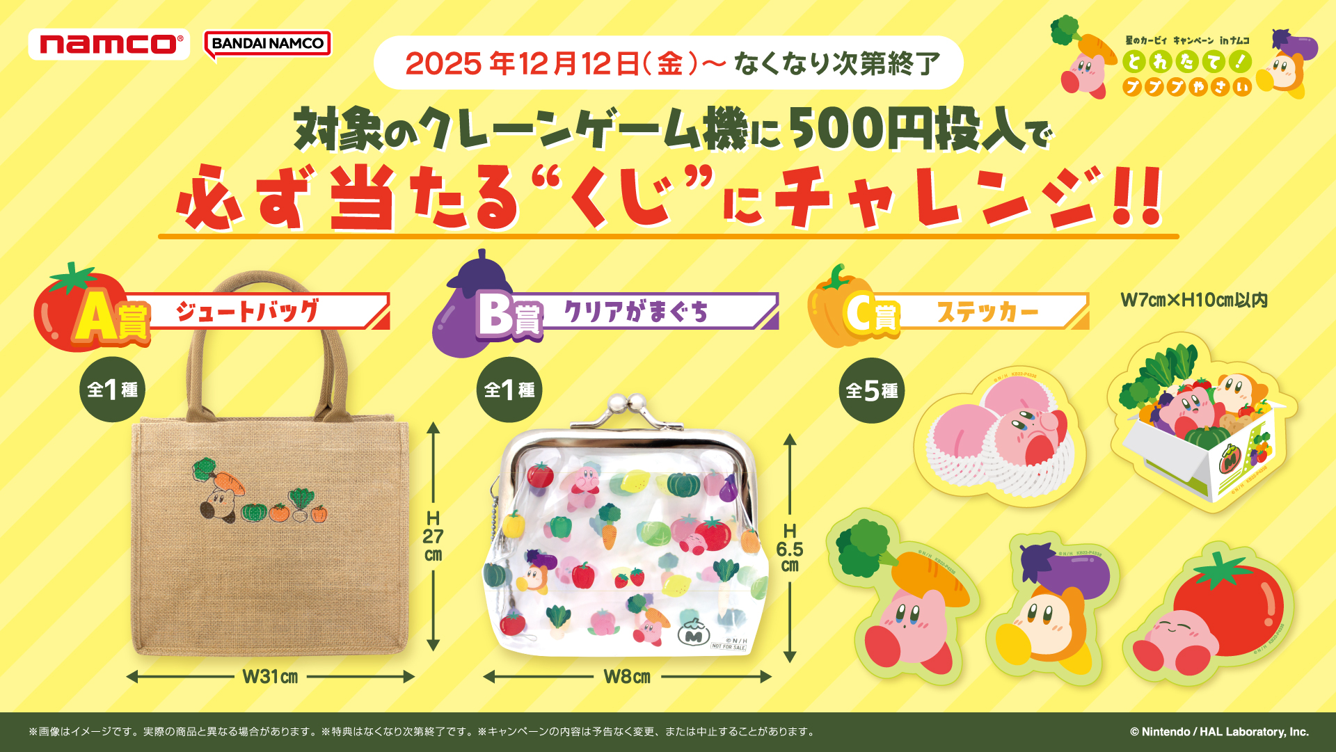 12월 12일(금)부터, 『별의 커비 캠페인 in namco 잡힌 갓! 푸푸푸야사이』를 개최!