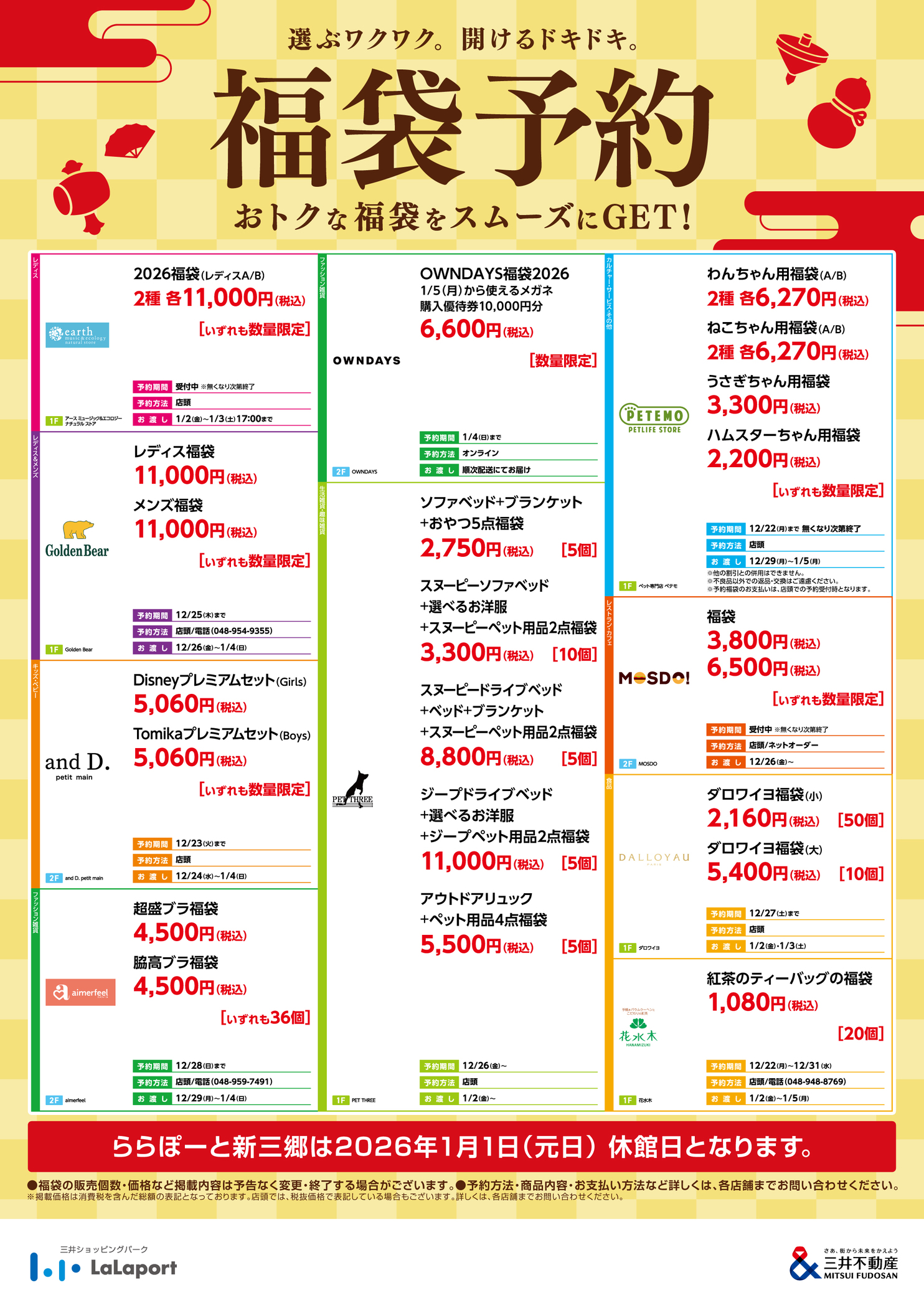 ※최신의 복주머니 판매 상황이나 상품의 내용등은 각 점포까지 Contact 주세요.