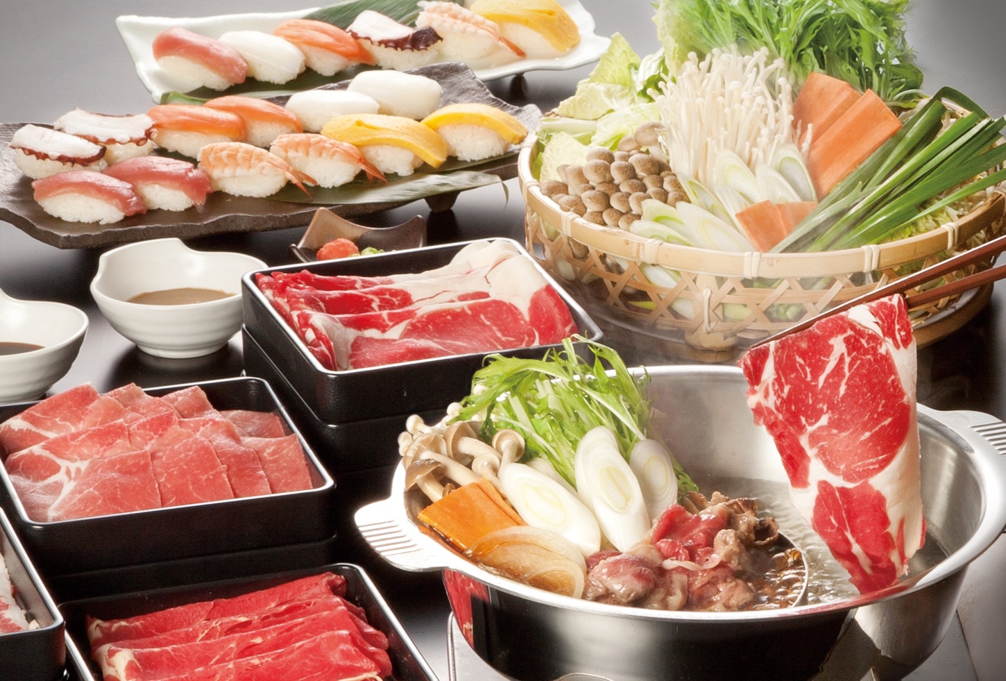 따뜻한 자유의 쇠고기와 돼지고기와 야채 바에서 선택할 수있는 신선한 야채를 원하는만큼 즐길 수있는 "샤브샤브"와 "스키야키"를 뷔페 레스토랑입니다.