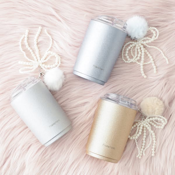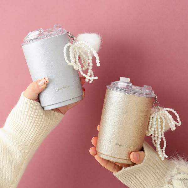 반짝 반짝 빛나는 반짝이의 병 부분에 푹신한 모피와 진주 매력 charm 있는 텀블러